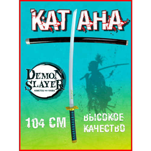 Катана меч из аниме клинок рассекающий демонов (Demon Slayer) 104 см, деревянное оружие меч