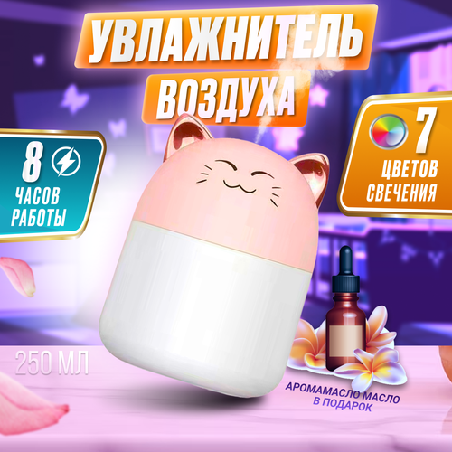 Увлажнитель воздуха ультразвуковой котик мини с подсветкой ароматизацией для дома