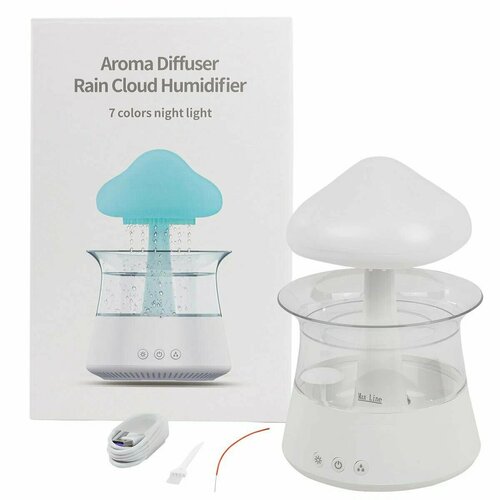 Увлажнитель воздуха гриб с подсветкой колонкой и эффектом дождя для дома
