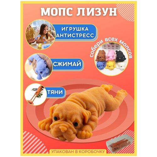 Детская игрушка антистресс собака тянучка, сквиш мопс лизун, мялка, жмякалка