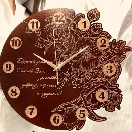 Часы из дерева "Цветы с благодарностью на выпускной" для учителю, классному руководителю, педагогу