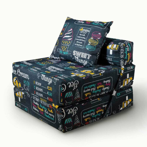 Кресло-кровать MyPuff бескаркасное, размер ХXXХL, 70 x 80 см, спальное место: 180х70 см, обивка: текстиль, цвет: айскрим
