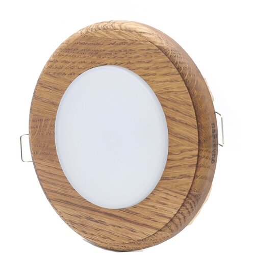 Встраиваемый точечный светодиодный светильник с круглой деревянной рамкой R5. T12, 6 Вт, 4200К, темный дуб