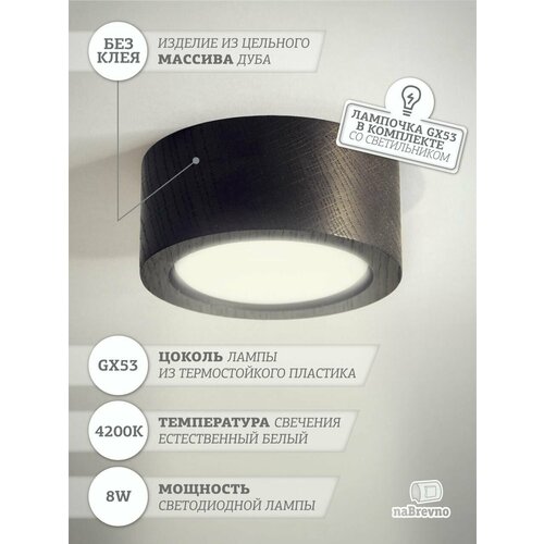 NaBrevno. Точечный накладной светильник GX53 8W 4200K, D100*42 мм, черный дуб.