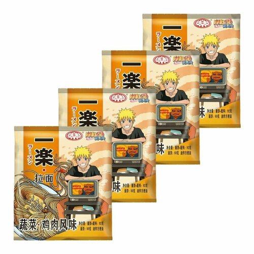 Лапша быстрого приготовления Ичираку Рамен со вкусом курицы Naruto, пачка 92 г х 4 шт