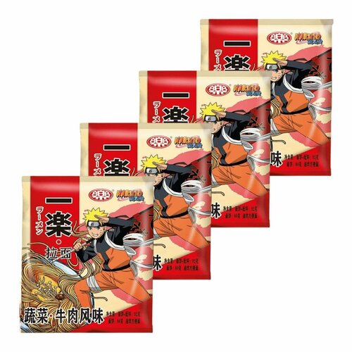 Лапша быстрого приготовления Ичираку Рамен со вкусом говядины Naruto, пачка 92 г х 4 шт