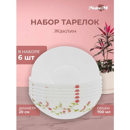 Набор тарелок глубоких НатаМ Жаклин 20 см на 6 персон 700 мл, стеклокерамика