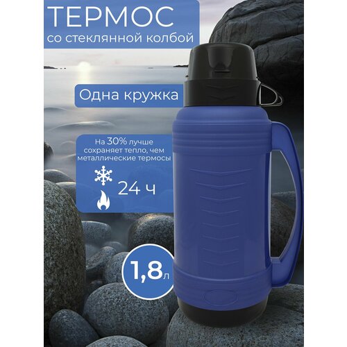 Термос НатаМ для чая 1,8 л со стеклянной колбой и кружкой