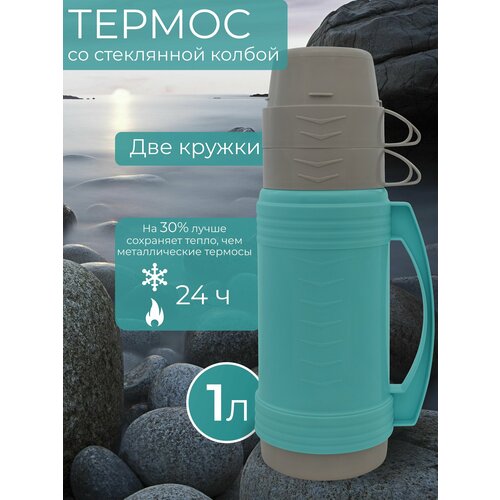 Термос НатаМ для чая 1 л со стеклянной колбой и кружкой
