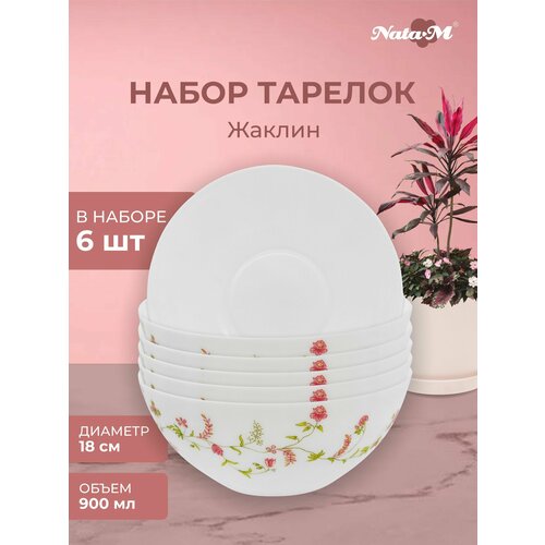 Набор тарелок глубоких НатаМ Жаклин 18 см на 6 персон 900 мл, стеклокерамика