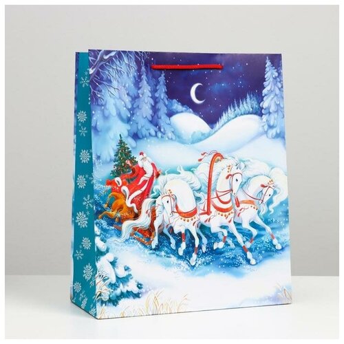 Пакет подарочный "Новогодние сани", 26 х 32 х 12 см