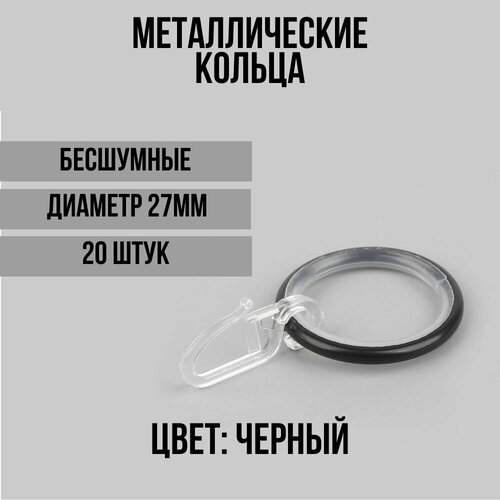 Бесшумные кольца для штор черные и крючки для колец, коплект 20шт