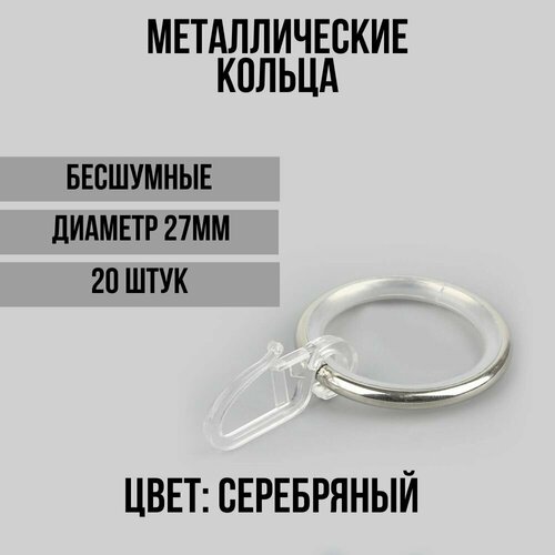 Бесшумные кольца для штор серебряный и крючки для колец, коплект 20шт