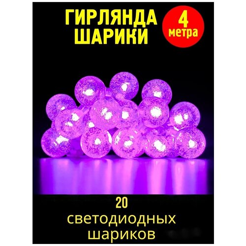 Новогодняя электрогирлянда хрустальные шарики, капельки цветные интерьерная светодиодная гирлянда 4 метра 20 ламп