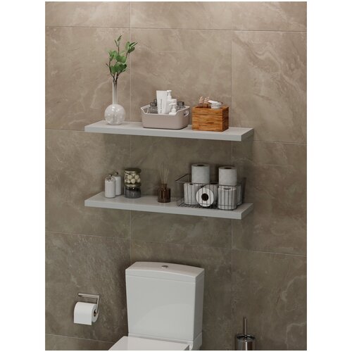 Полка настенная 2 шт. навесная скрытого крепежа 750х250х25, серая прямая, крепление в комплекте