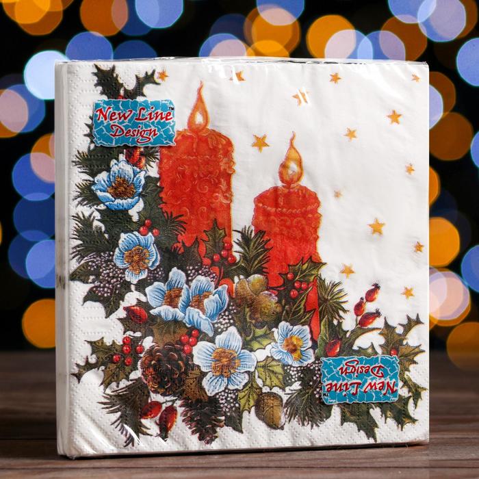 Новогодние салфетки бумажные New Line Fresco «Свечи», 33х33 см, 3 слоя 100045803646