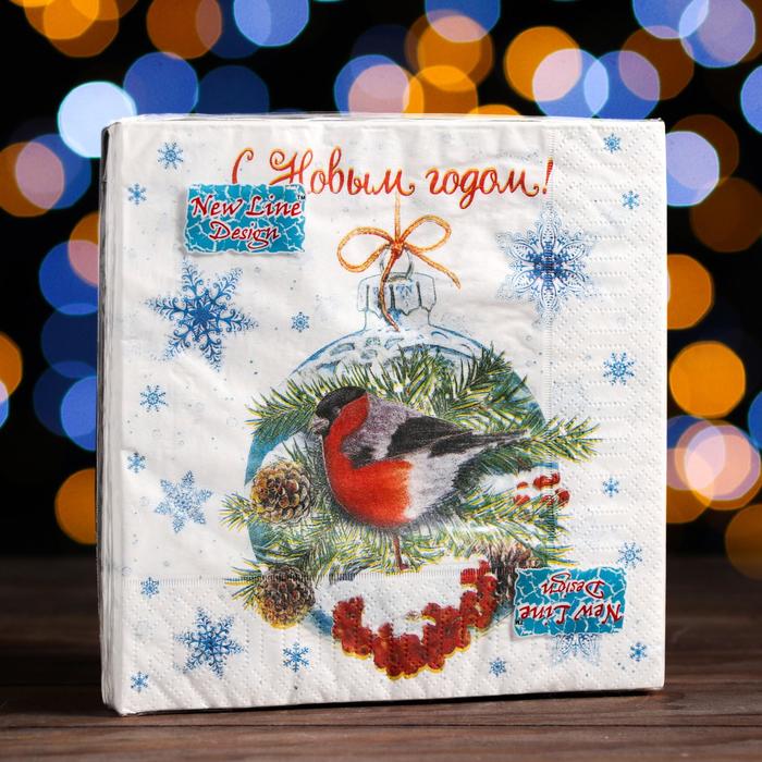 Новогодние салфетки бумажные «Зимние птички», 33х33 см, 3 слоя 100045803645
