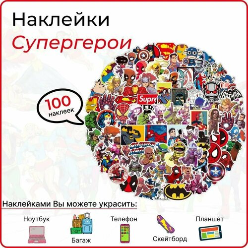 Наклейки на ноутбук 100 шт, телефон, планшет, багаж, скейтборд, стикеры самоклеющиеся Супергерои
