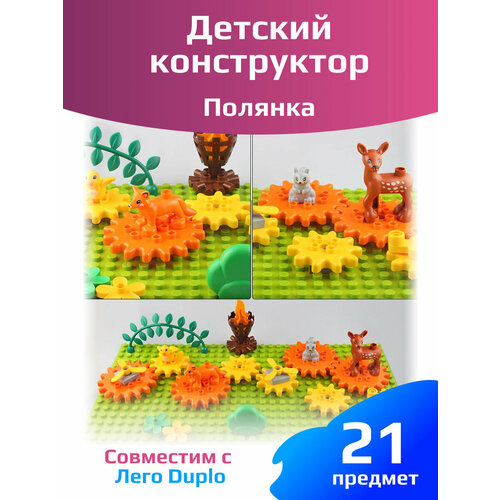 Детский конструктор для лего DUPLO, пластиковый конструктор с фигурками животных, игра с шестеренками Полянка, размер пластины 51х26 см