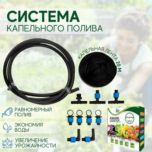Система капельного полива от водопровода, капельная лента 20 метров, шаг эмиттеров - 20 см