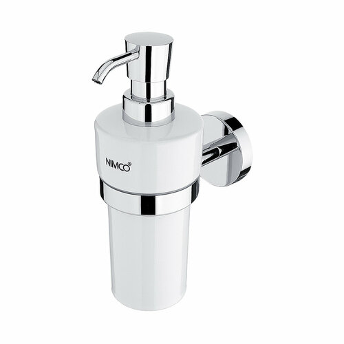 Диспенсер подвесной для жидкого мыла, фабрика Nimco, коллекция Unix, материал латунь, цвет хром, колба белая керамика