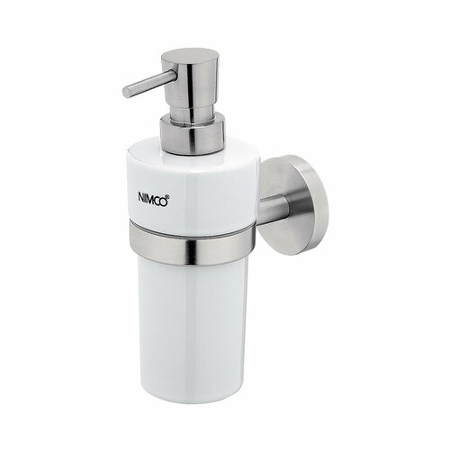 Диспенсер для жидкого мыла, фабрика Nimco, коллекция Unix, материал латунь, цвет сатинированная сталь, белая керамика