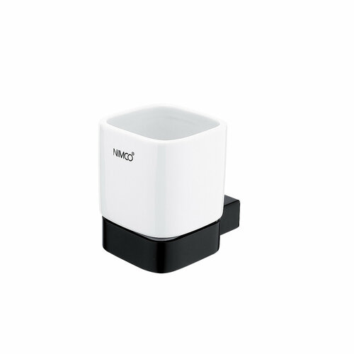 Настенный стакан для щёток, фабрика Nimco, коллекция Kibo Black, материал латунь, цвет черный матовый, керамика белая