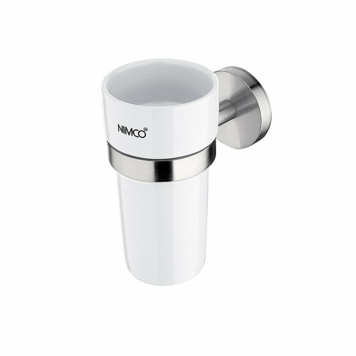 Стакан подвесной, фабрика Nimco, коллекция Unix, материал латунь, цвет сатинированная сталь, колба белая керамика