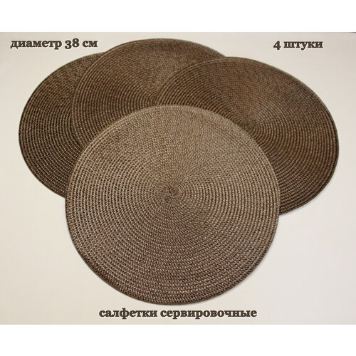 Круглые плейсматы для сервировки стола, подставка под горячее, 38х38 см, цвет коричневый, в комплекте 4 шт