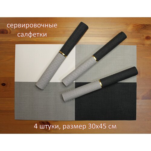 Салфетки сервировочные для стола, набор сервировочных салфеток, 30х45 см, 4 шт, черный, белый, серый