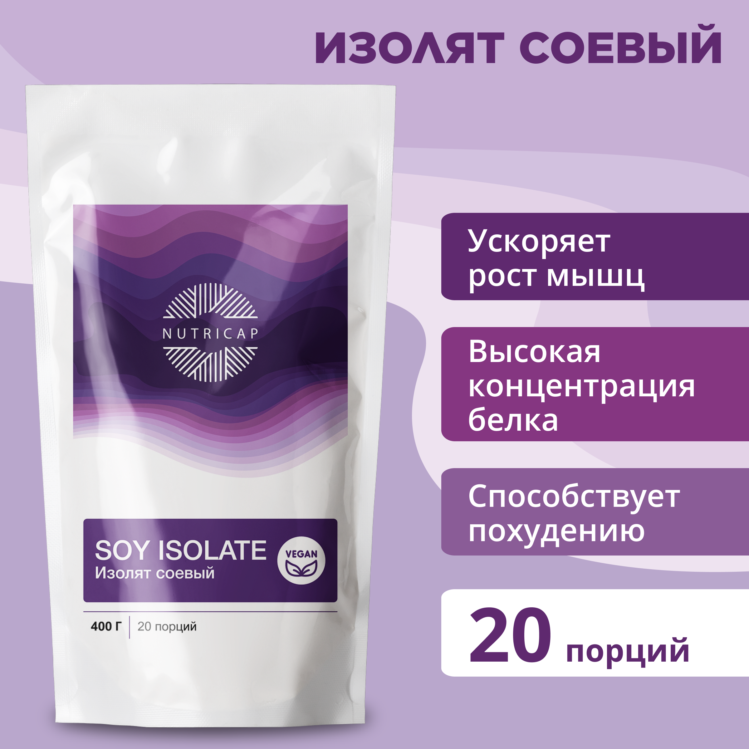Соевый протеин NUTRIcap изолят без добавок натуральный 400 г изолят соевый