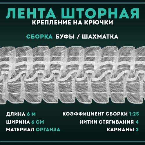 Лента шторная прозрачная для занавесок, штор, портьеры, тюли, органза, 6 метров,2705 см*60мм