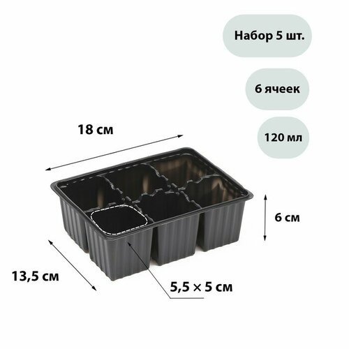 Paulo Maskoni Кассета для рассады, 6 ячеек по 120 мл, набор 5 шт, чёрная