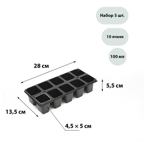 Paulo Maskoni Кассета для рассады, 10 ячеек по 100 мл, набор 5 шт, чёрная