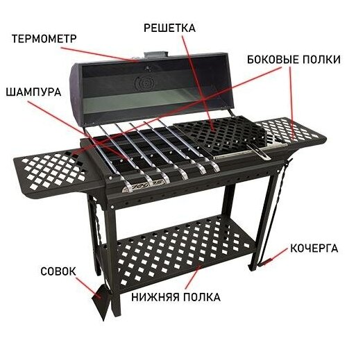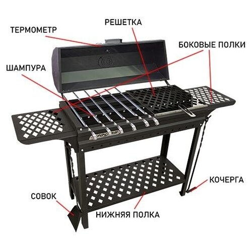 Мангал Пегас Дача (мангал, печь, кочерга, совок, шампур, столики, термометр)