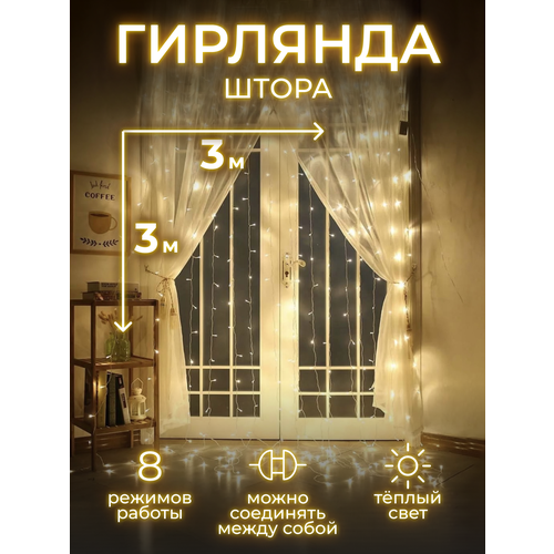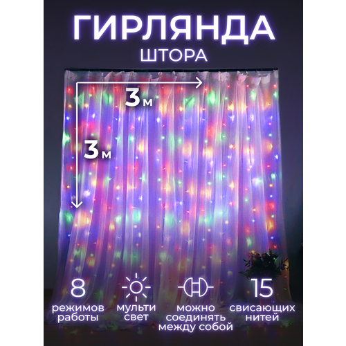 Гирлянда штора 3х3 новогодняя светодиодная занавес на окно