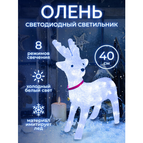 Олень новогодний светящийся, светодиодные фигуры под елку 40 см