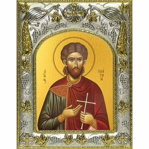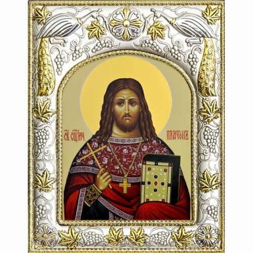 Икона Платон Анкирский, 14x18 в серебряном окладе, арт вк-4260