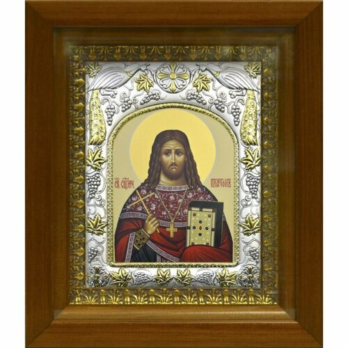 Икона Платон Священномученик 24x30 см в серебряном окладе со стразами в деревянном киоте, арт вк-903