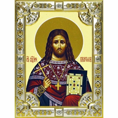 Икона Платон Священномученик со стразами 18х24 см в серебряном окладе, арт вк-902