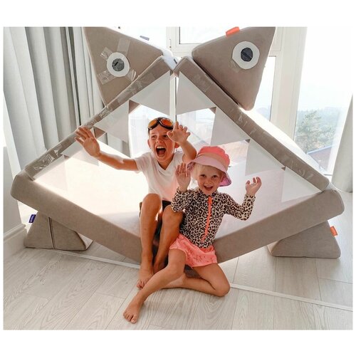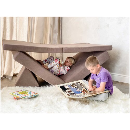 Детский диван-трансформер Playdivan Taupe, размер 172х86см, ткань велюр, бескаркасный игровой диванчик
