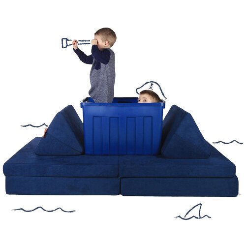 Детский диван-трансформер Playdivan Navy, размер 172х86см, ткань велюр, бескаркасный игровой диванчик