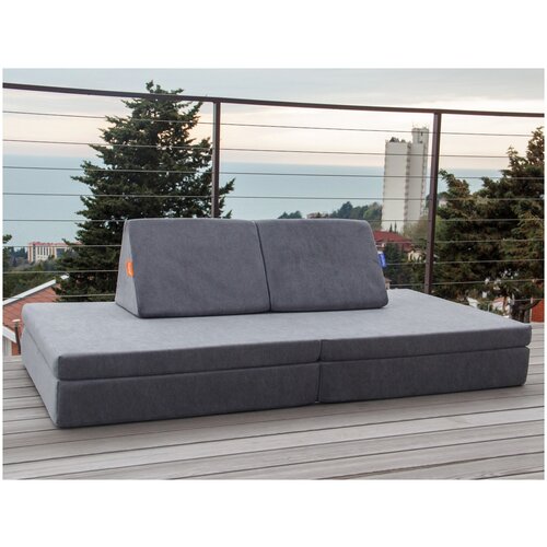 Детский диван-трансформер Playdivan Space Grey, размер 172х86см, ткань велюр, бескаркасный игровой диванчик
