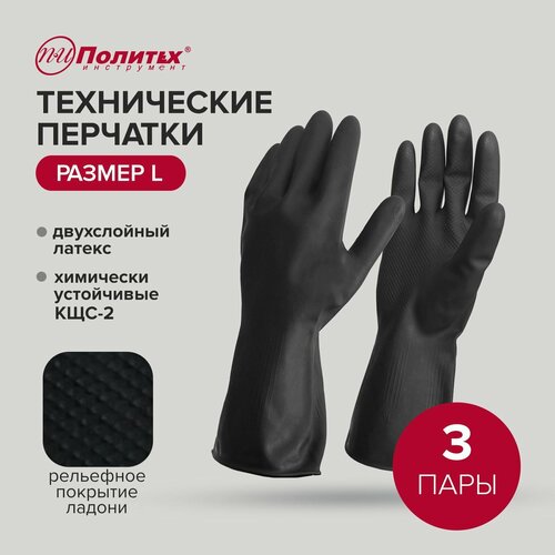 Перчатки рабочие хозяйственные латексные тип 2, размер L, 3 пары Политех Инструмент