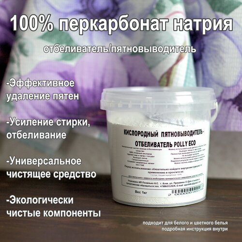 Кислородный очиститель Polly eco 1 кг, пятновыводитель для белого и цветного белья, отбеливатель экологичный универсальный, перкарбонат натрия 100%