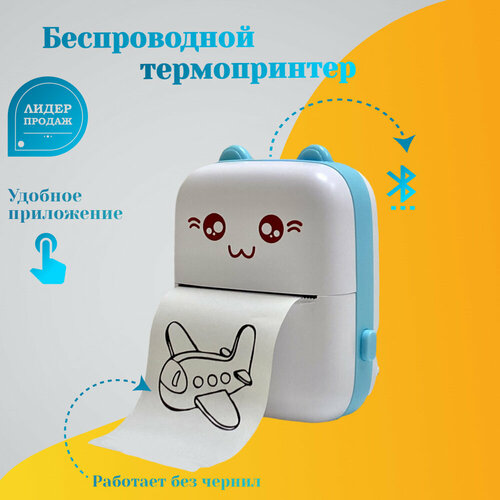 Карманный принтер / Мини-принтер / Принтер для детей / Портативный мини термопринтер / Беспроводной принтер для телефона / Голубой