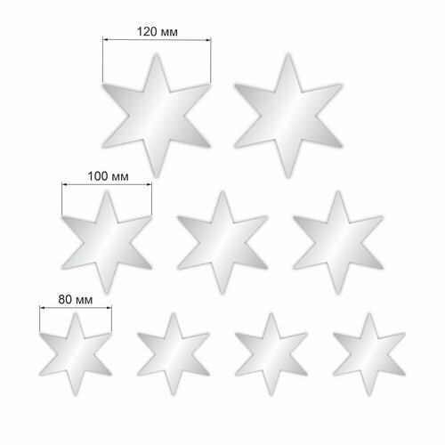 Декоративные зеркала самоклеящиеся "Звёзды", 9 штук