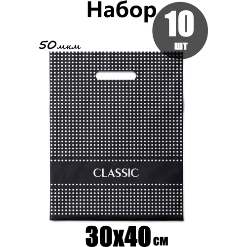 Пакет полиэтиленовый подарочный набор 10 шт 30х40 см / горошек/ унисекс 50 мкм
