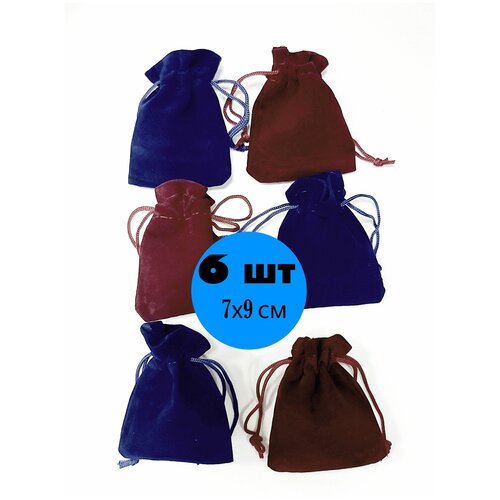 Мешочки подарочные бархатные набор 6 шт 7х9 см / синий / бордовый