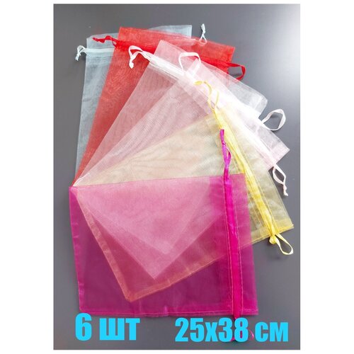 Мешочки для подарков прозрачные набор 6 шт 25х38 см / органза / микс